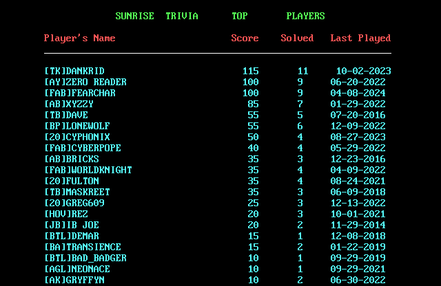 Direct link to originalBack to scores:singleBack to top sunrise_trivia.png Share via Share via... Twitter LinkedIn Facebook Pinterest Telegram WhatsApp Yammer RedditRecent ChangesSend via e-MailPrintPermalink × Size of this preview: 640 × 416 pixels. Other resolutions: 64 × 41 pixels 160 × 104 pixels 320 × 208 pixels 480 × 312 pixels 640 × 416 pixels scores:single:sunrise_trivia.png ( 640 × 416 pixels ) Information Date:01/09/2026 17:00Filename:sunrise_trivia.pngFormat:PNGSize:6KBWidth:640Height:416 References for single This list might not be complete due to ACL restrictions and hidden pages. Metadata Exif IPTC